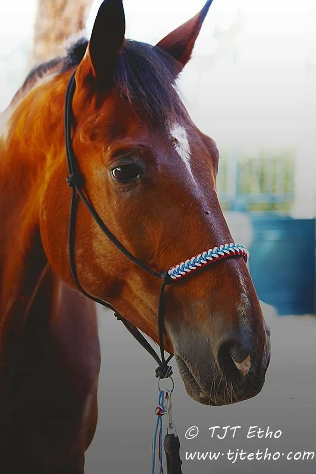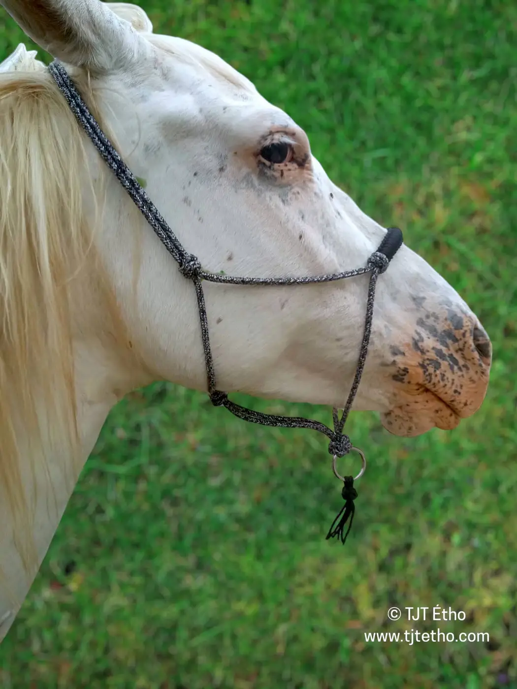 Licol éthologique nœud diamant + anneau d'attache en corde polypropylène de 6 mm. Indiquer dans le commentaire, la race si connu et taille au garrot ou prendre les mesures comme indiqué sur le site.